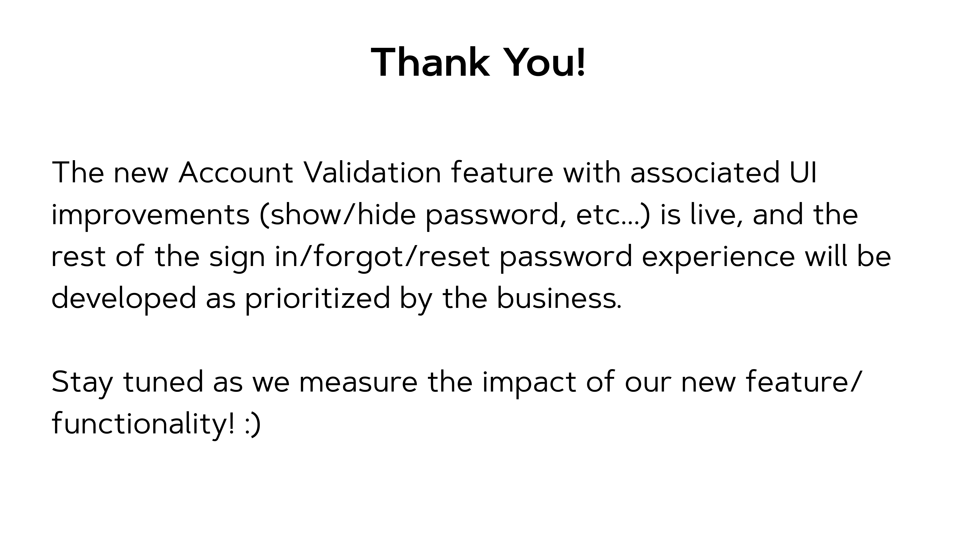 UAT of new account validation feature: